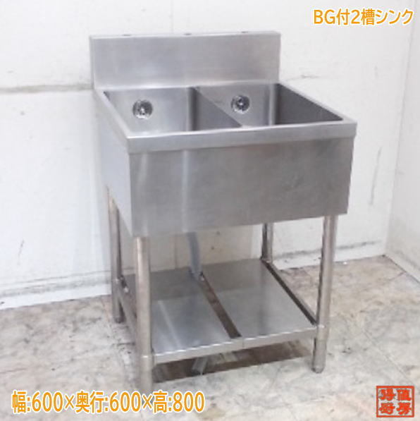 - ステンレス BG付2槽シンク 600×600×800 業務用 中古厨房/25J2614Z