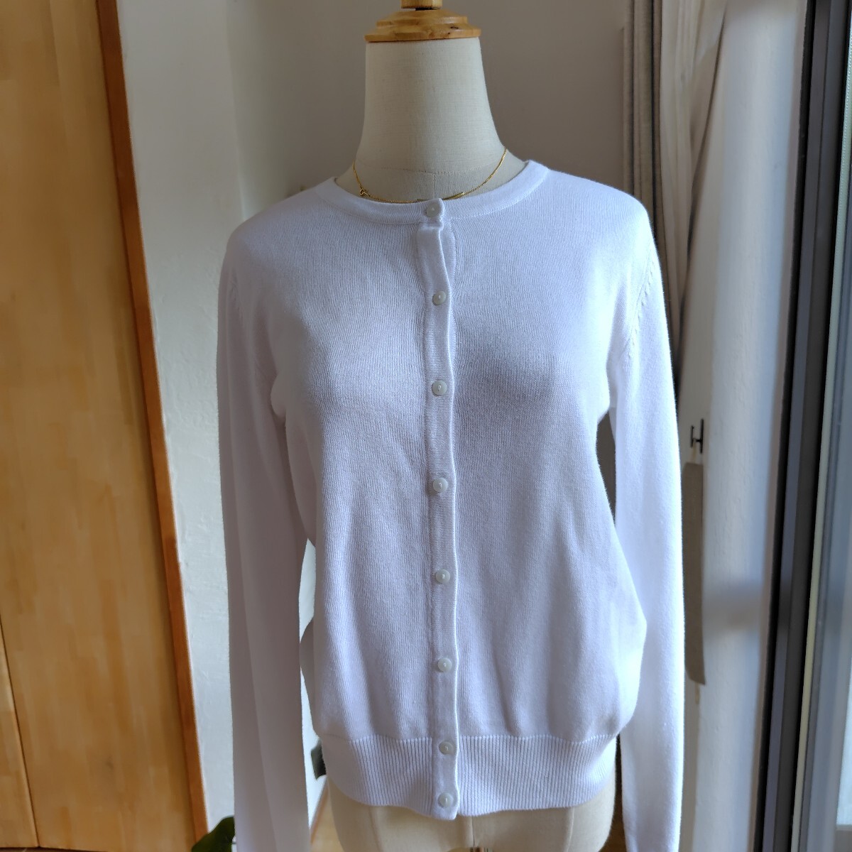 - 新品 H & M コットン100% ラウンドネック 長袖ニットカーディガン S 白 着まわし力 大☆