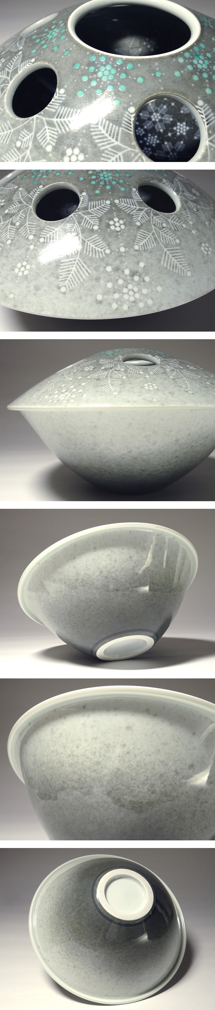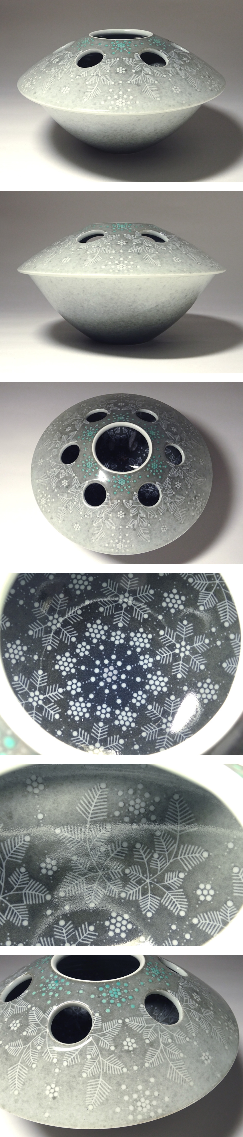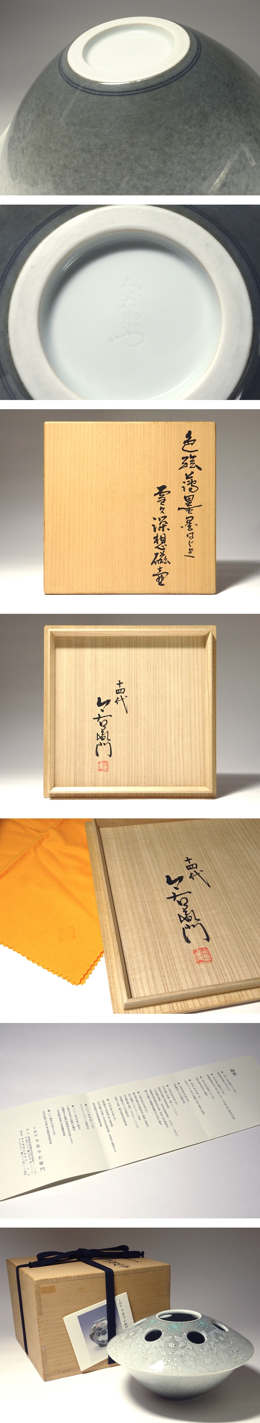 - 慶應◆人間国宝【十四代今泉今右衛門】本人作 色絵薄墨墨はじき雪文深想磁壷 共箱・共布付