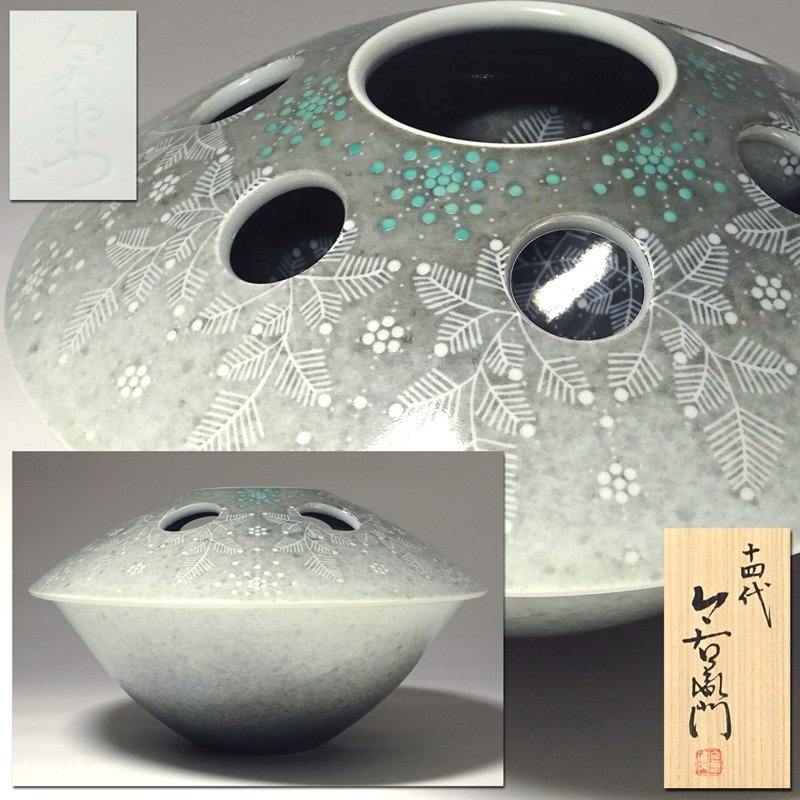 > 慶應◆人間国宝【十四代今泉今右衛門】本人作 色絵薄墨墨はじき雪文深想磁壷 共箱・共布付