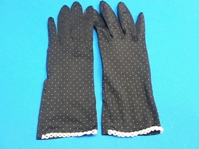 - nk17-25-0925-1-2 レディース 手袋 薄手 水玉 黒 約22㎝程 グローブ 滑り止め付き 女性用 中古
