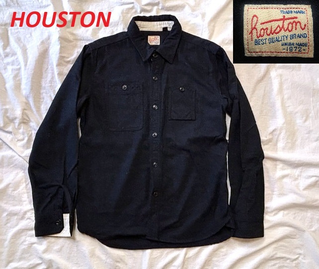 - HOUSTONヒューストンレーヨン混ウールシャツL★長袖山ポケガチャポケ変形ポケットマチ付