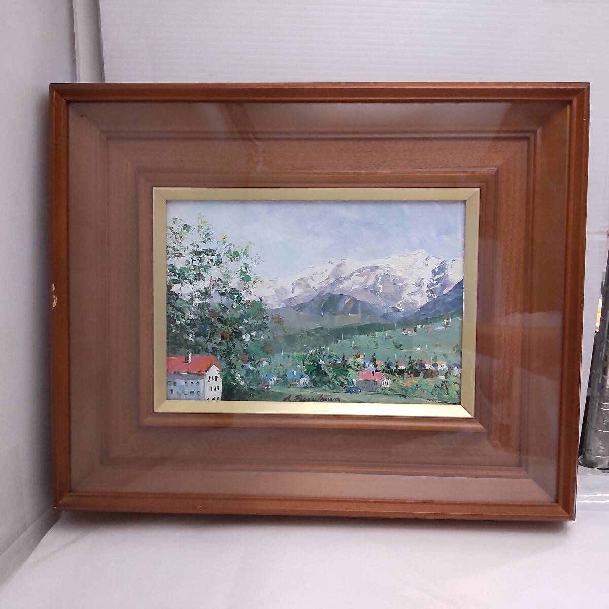 - Y100707■真作 日本画家 古川明雄 油彩 グリンデルワルド 風景画 額装 約39×32cm 絵画 花 アート 油絵 油彩画 美術品 A. Furukawa■