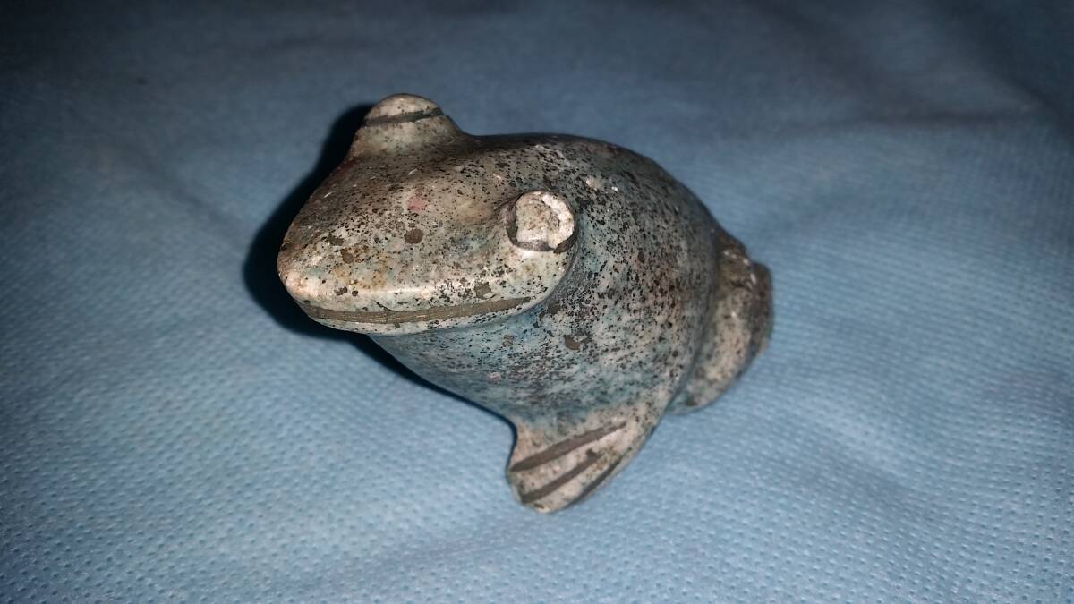 - アンティーク:置物 石カエル 蛙 深緑 石蛙 石像 石彫 置物 全長約8cm 当時物 2507/オクパナ