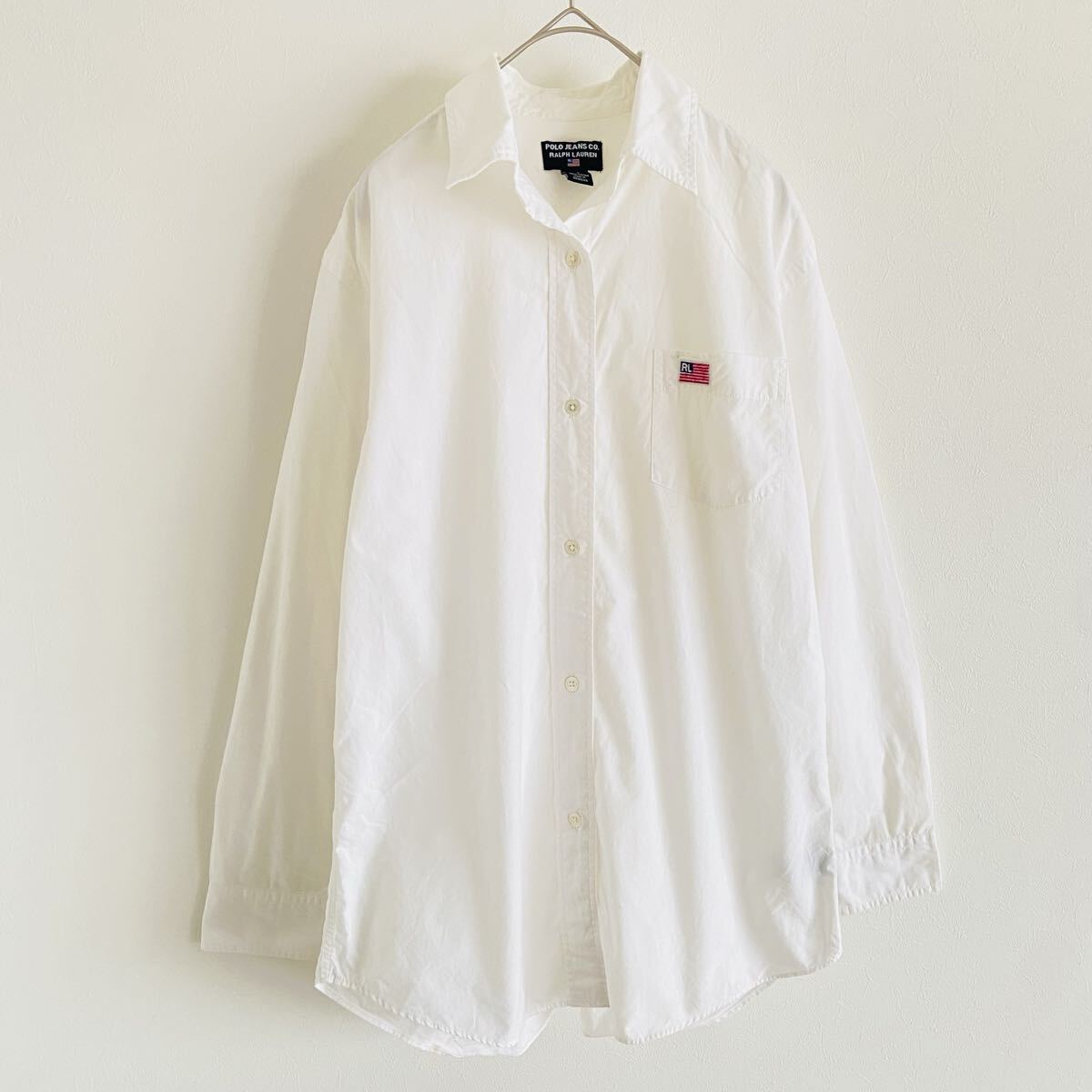 - 【ポロジーンズ/ラルフローレン】ワンポイント刺繍 長袖シャツ/S表記/ホワイト/衝撃プライス!ヴィンテージフリーク待望★1点限定販売!C52