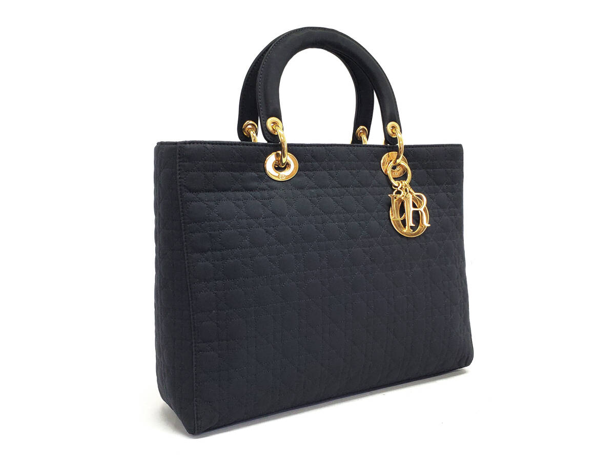 - KS260-40798◆極美品【クリスチャンディオール】 レディディオール・ラージ・ハンドバッグ・カナージュ◆べタ無◆ブラック 黒