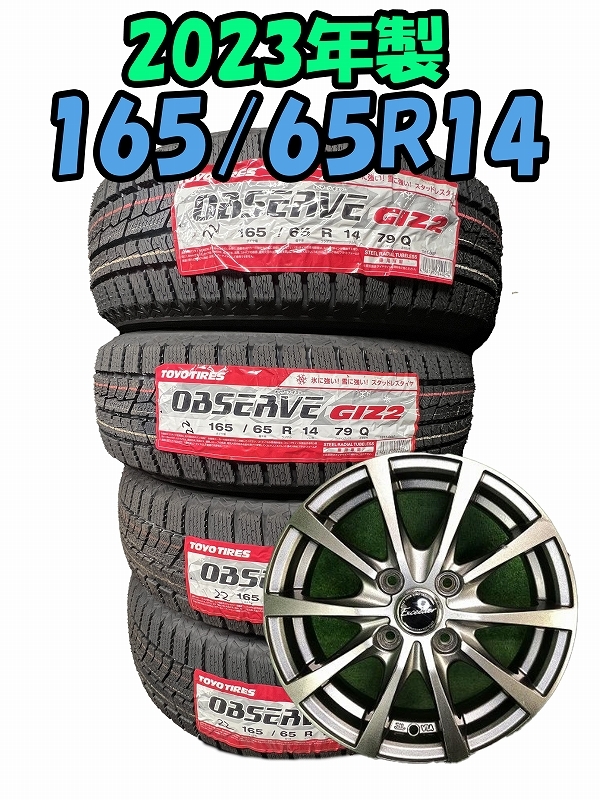 - 2023年製 165/65R14 79Q TOYO OBSERVE GIZ2 新品 スタッドレス/中古 アルミホイール 4本【組み付け無料バランス込み】T-662