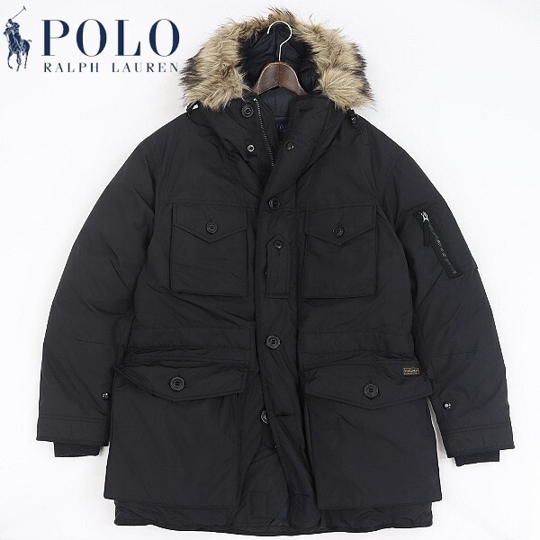 - 【HA603】◆POLO RALPH LAUREN ポロ ラルフローレン フェイクファー付 フーデッド ダウン コート 黒 ブラック L