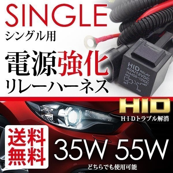 > HID シングル用 電源 強化リレーハーネス 35W/55W 効果絶大 汎用 防水 チラつき 電圧不足解消 電圧安定 国内検査後出荷 定形外 送料無料