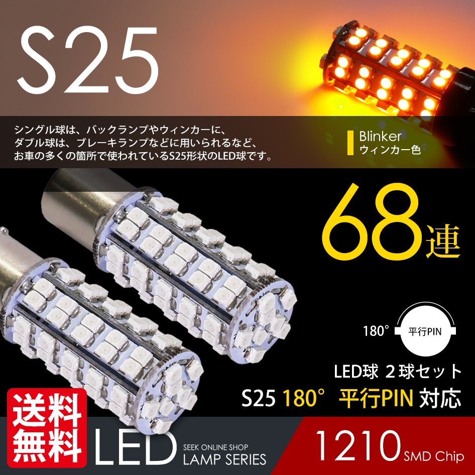 > S25 LED ウインカー 68連 180度 アンバー シングル球 黄 平行ピン 希少 国内 点灯確認 検査後出荷 ネコポス 送料無料
