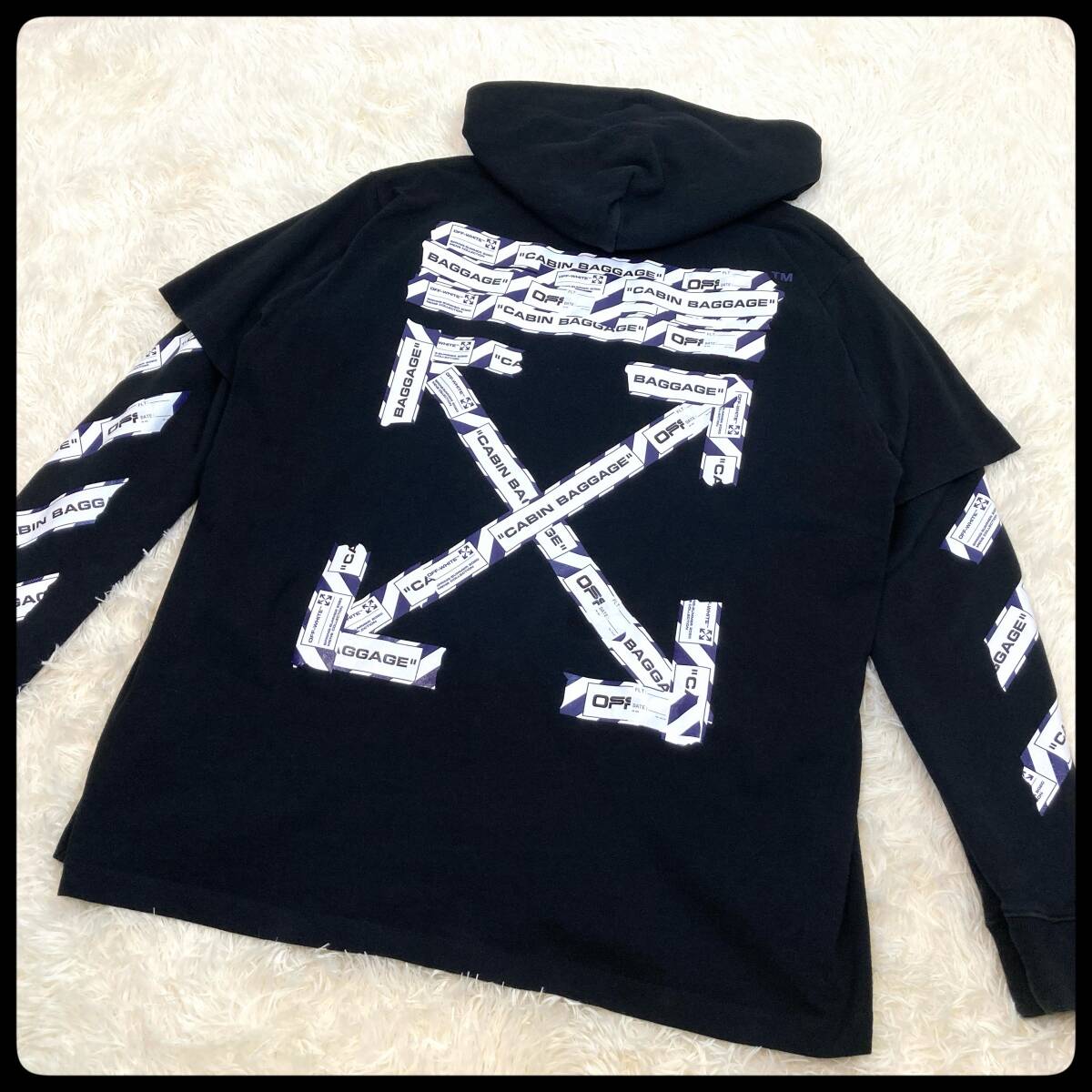 - OFF-WHITE オフホワイト パーカー フェイクレイヤード クロスアローロゴ フーディ プルオーバー 黒 ブラック ストリート オーバーサイズ