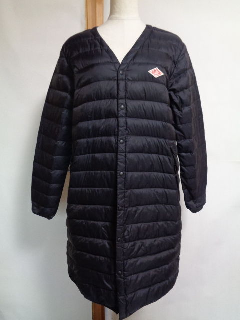 - 美品★DANTON*38*黒*インナーダウン*ノーカラーダウン*薄手ダウン*ダントン*黒*ミディアム丈コート*ミドル*レディース*女