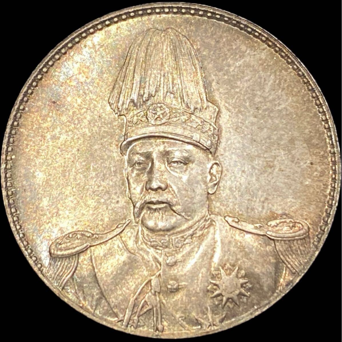 - 中国 中華民国中央政府 Republic of China 袁世凱羽根帽共和紀念幣 壹圓(Dollar) ND(1914) LM-858 未洗浄 記念銀貨