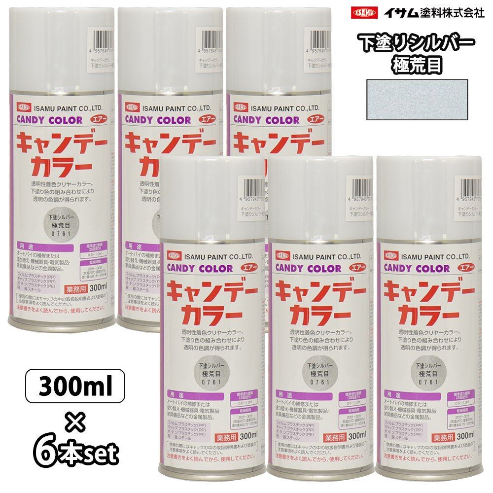 - イサム キャンディーカラー エアゾール 300ml6本セット / 0761 下塗 シルバー 極荒目 キャンディ 塗料 スプレー ラッカー Z24