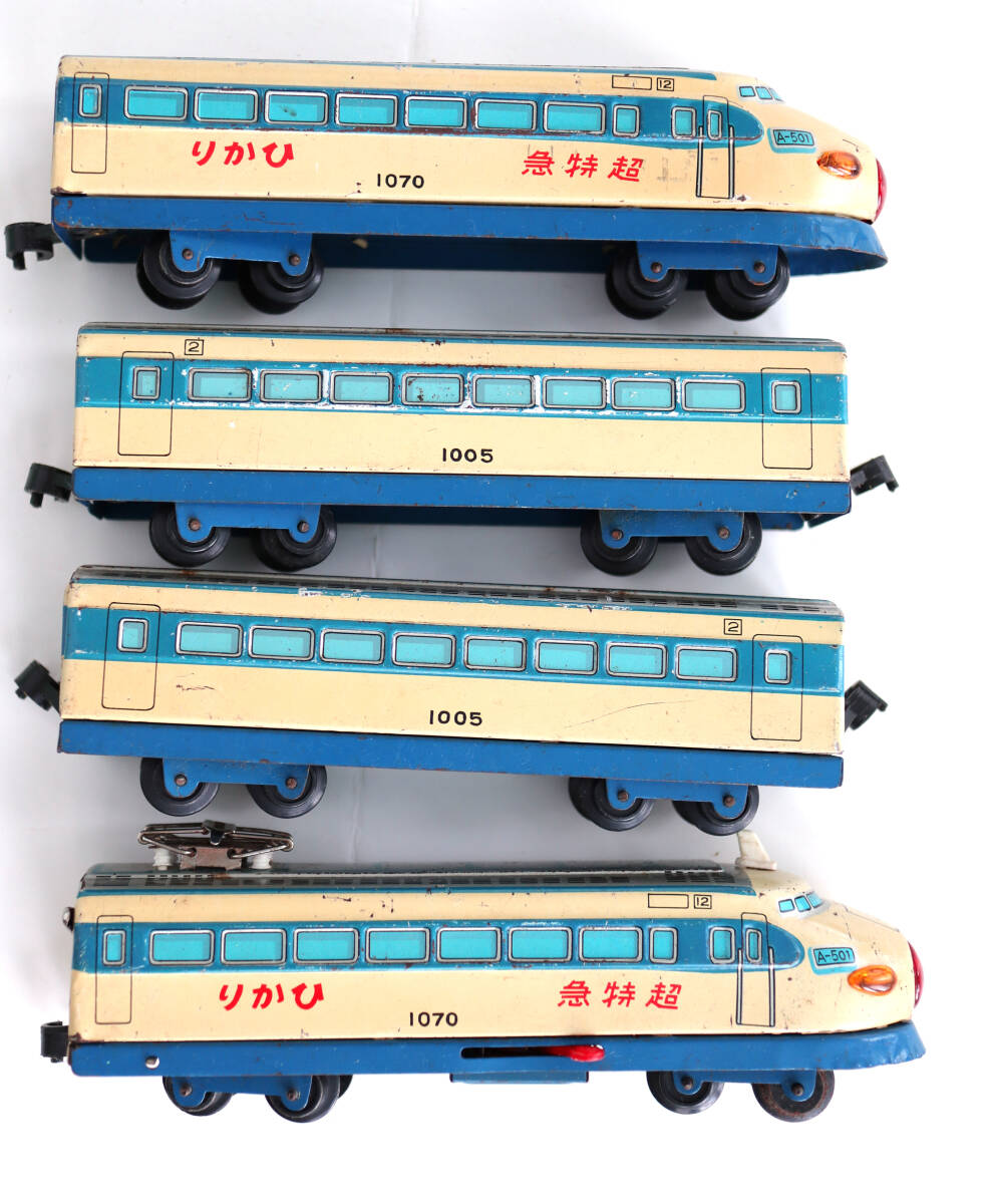 - 【 超特急 ひかり 】 新幹線 ★ 4両編成 ★ 傷汚れあり ★ 単二電池2本仕様 ★ 稀少レア ★ 55年以上前の物 ★ イチコー?