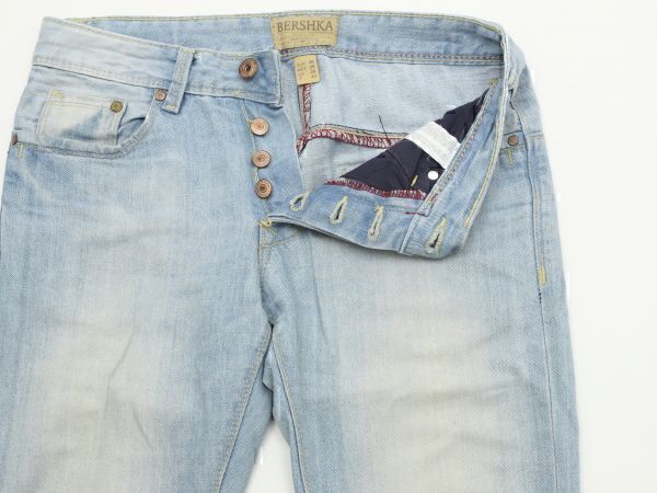 - ★古着Bershka ベルシュカ★ルーズフィットデニムパンツ★Sサイズ★EUR36★ウォッシュドブルー【本物保証】スリムデニム★渋谷ファッション