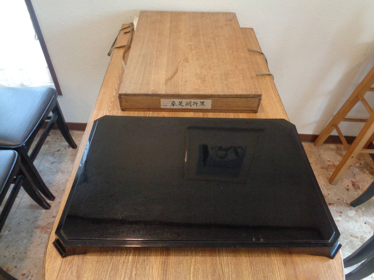 - アンティーク 輪島塗でしょうか? 足付き盆 卓足紙折黒と書かれています。木箱入り