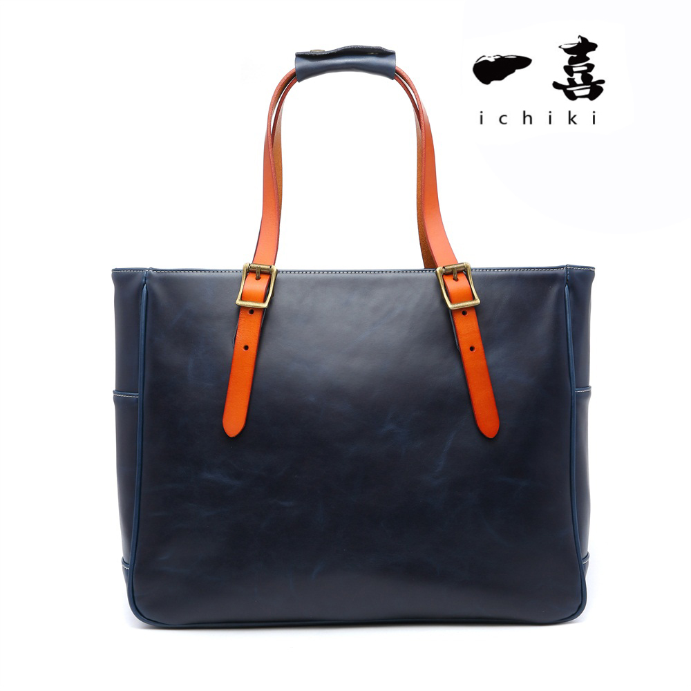 - トートバッグ ハンドバッグ ビジネス お持ち手調節可 牛床革 WAY 大容量 男女兼用 ネイビーブルー D31
