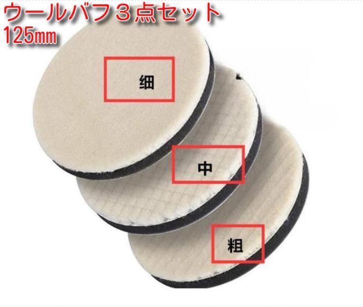 - ウールバフ3点セット 125mm 荒目 中目 細目 自動車 ボディー 研磨 ポリッシャー コーテイング スポンジ お得