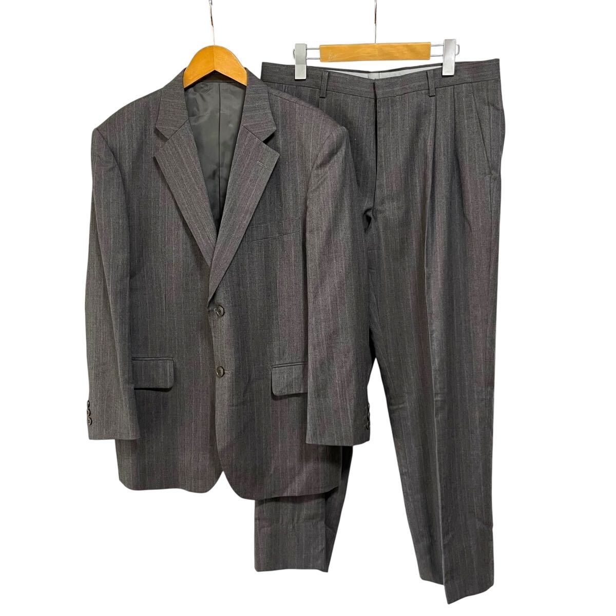 > ※SU1 CEDORE シングルスーツ セットアップ グレー ストライプ 2Bテーラードジャケット 2タックスラックス 表記AB5 メンズM〜L相当