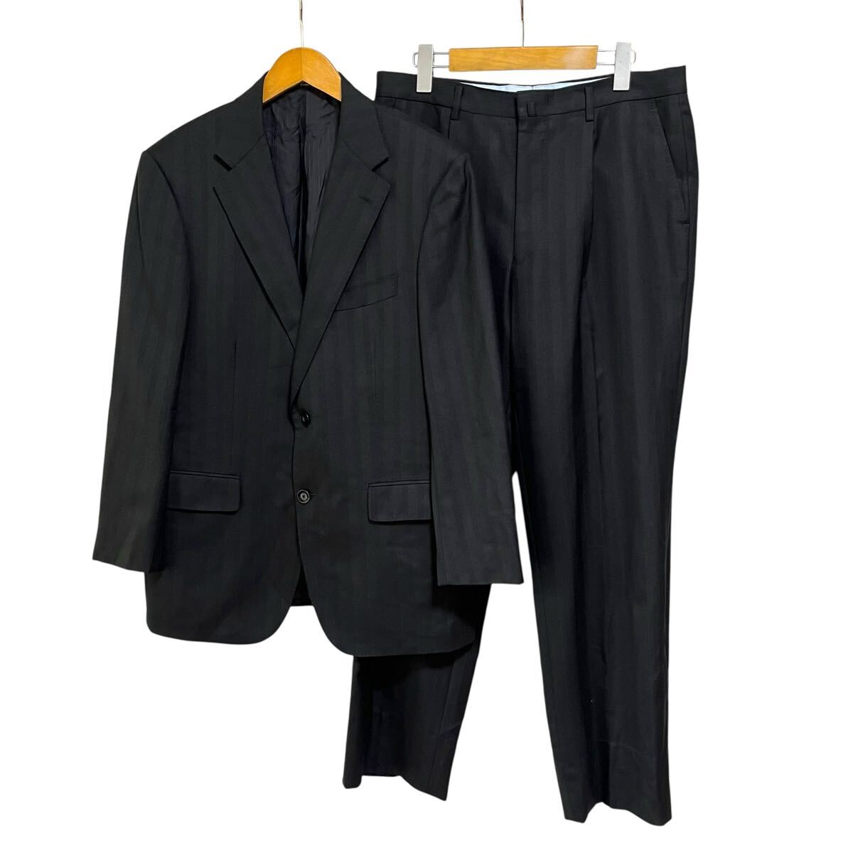 - ※SU1 Savile Raw シングルスーツ セットアップ ブラック ストライプ 2Bジャケット タックスラックス ウール100% メンズM相当