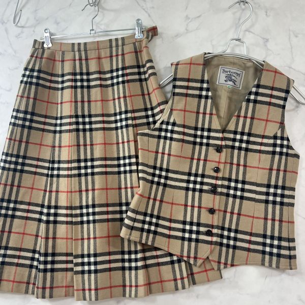 > 極美品 バーバリーズ セットアップ 上下 ベストプリーツスカート ノバチェック ウール ベージュ系 レディース Burberrys B1564