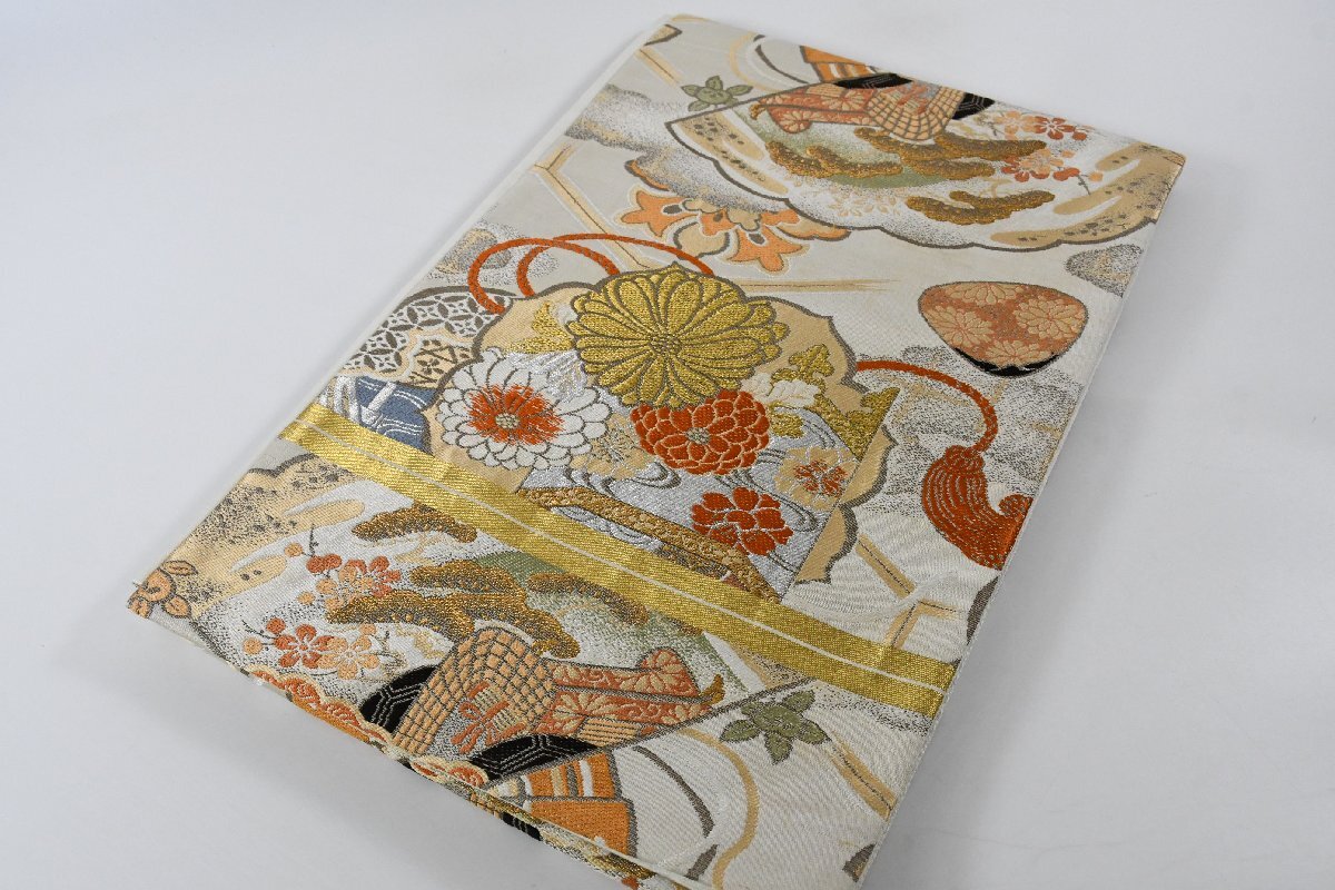 > 袋名古屋帯 アンティーク 菊 花 紐文 帯丈378cm ★着物屋 ne-16452 桜庭呉服店
