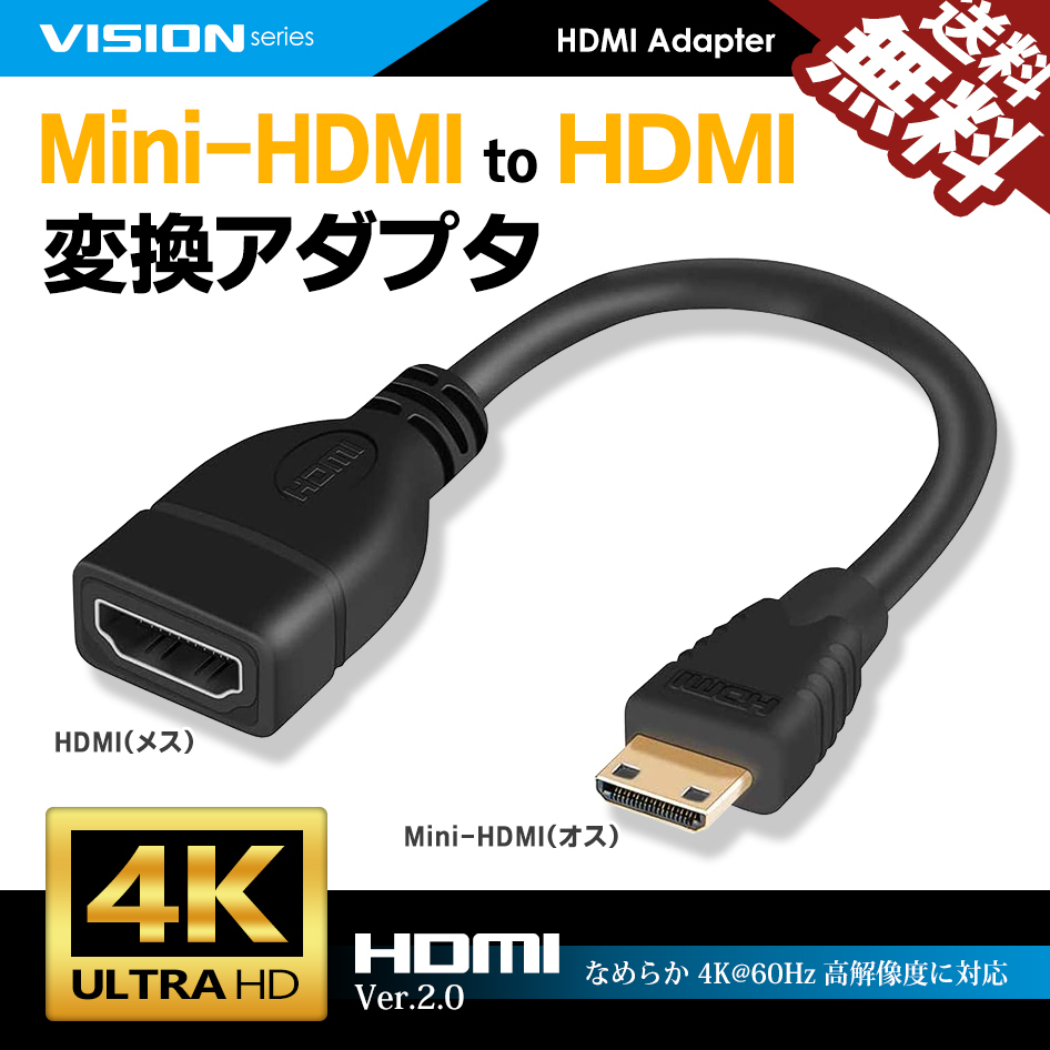 - MiniHDMI to HDMI 変換アダプタ 261031 HDMI2.0対応 コンバータ ケーブル 1080P 4K 60Hz 16cm オス-メス ネコポス 送料無料