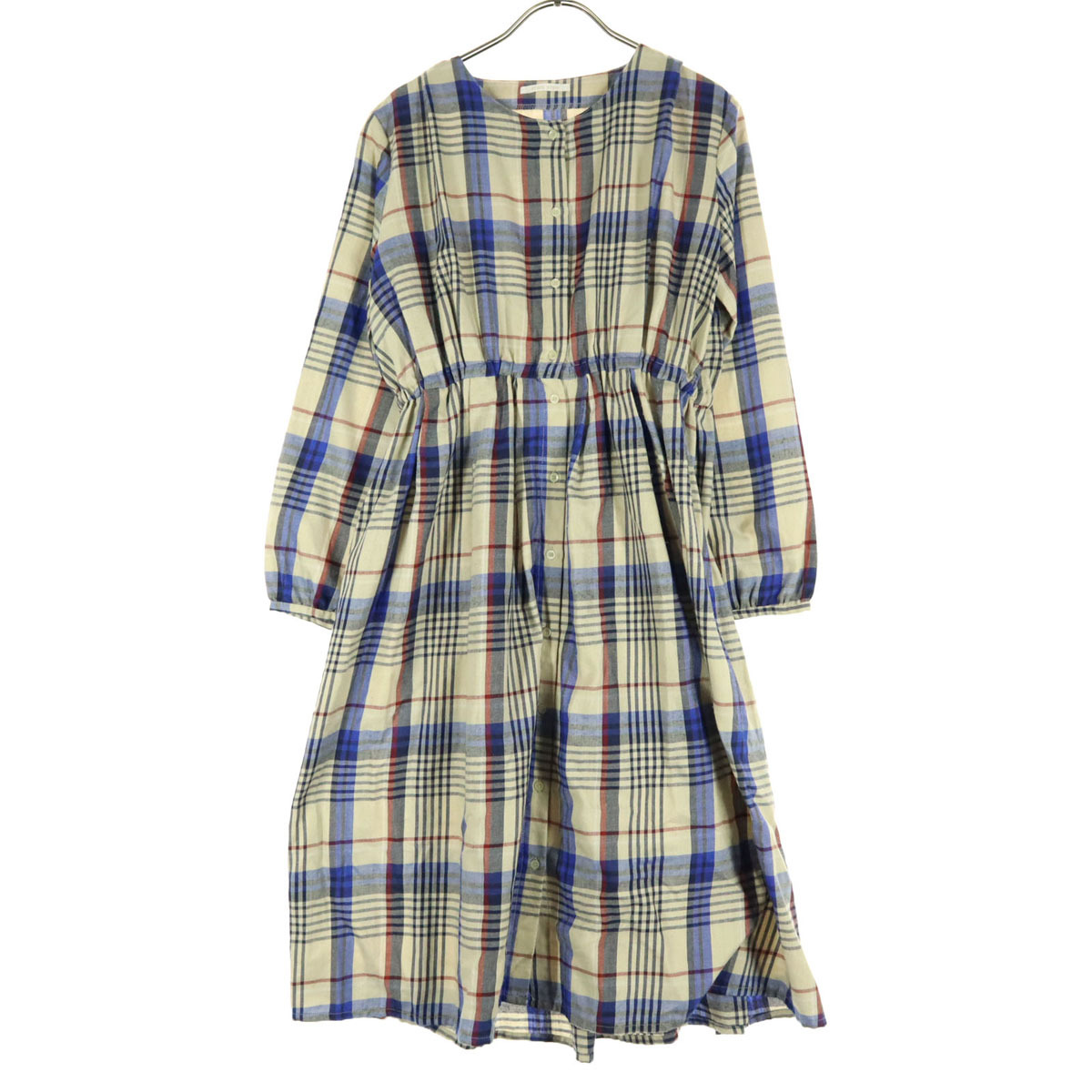 ehka sopo エヘカソポ チェック柄 長袖 ミモレ丈 ノーカラー シャツワンピース M ベージュ系 レディース