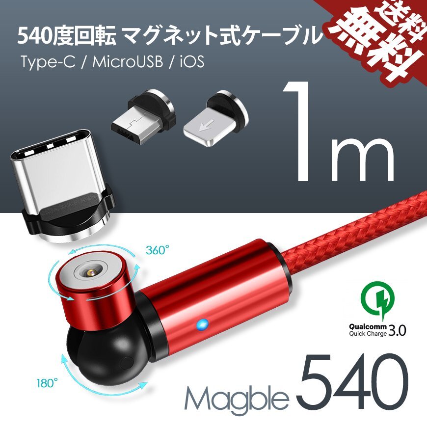 > 540° TYPE-C マグネット Micro USB Android iPhone 3端子付き スマホ ケーブル マイクロ 充電 マグブル540 1m ネコポス 送料無料