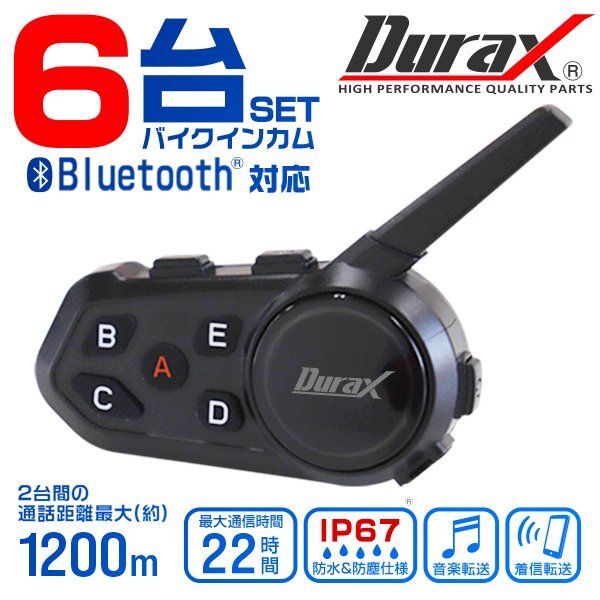 - 【6台セット】バイクインカム 最大6台接続 インカム 1200m通話 Bluetooth ツーリング 無線 電話 アウトドア ノイズキャンセル 防水 IP67