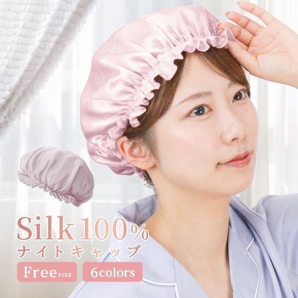 - ナイトキャップ シルクナイトキャップ ヘアケアキャップ ルームウエア 就寝用 睡眠 美髪 ダメージケア 保湿 パサつき アッシュピンク
