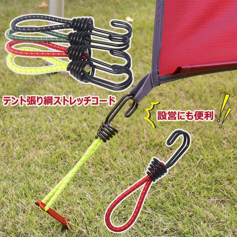 - HIKEMAN ストレッチコード パーツ 袋付き 反射材入り 8本セット テント・タープ部品 ツインフック キャンプ アウトドア用 109 4色から選択