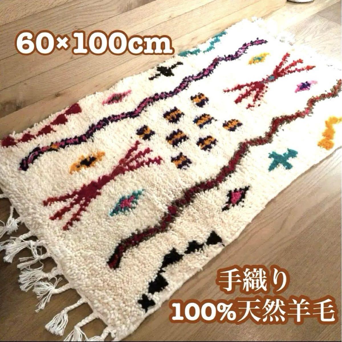 - ベニワレン モロッカン インテリア ラグ マット アジラル 手織り 天然羊毛