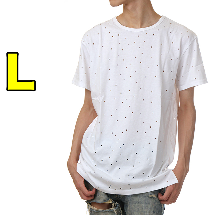 > 【新品】HENRY&WILLIAM ロング丈 半袖 Tシャツ L 白 ホワイト メンズ ヘンリー&ウィリアム 穴あき 無地 ブランド 大きいサイズ USAモデル