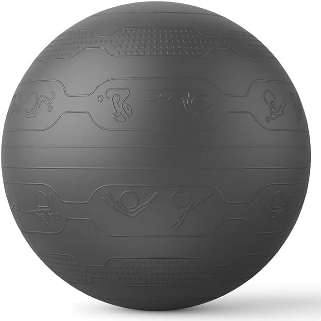> ブラック色 耐荷重300KG PROIRON バランスボール 65cm ばらんすぼーる トレーニングガイドパターン付き 厚い ジムボール
