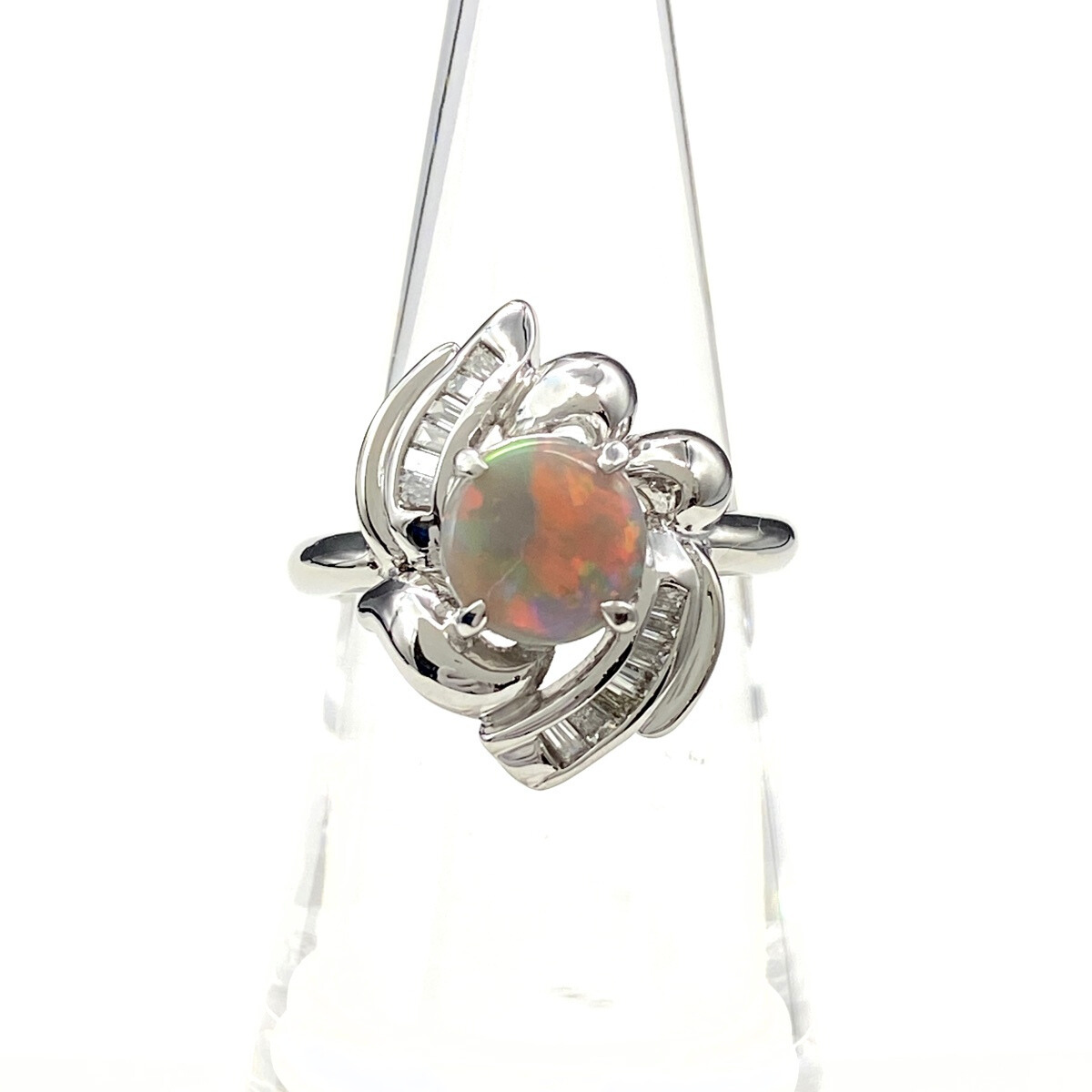 > オパール デザインリング プラチナ 指輪 メレダイヤ リング 12号 Pt900 オパール ダイヤモンド レディース 【中古】