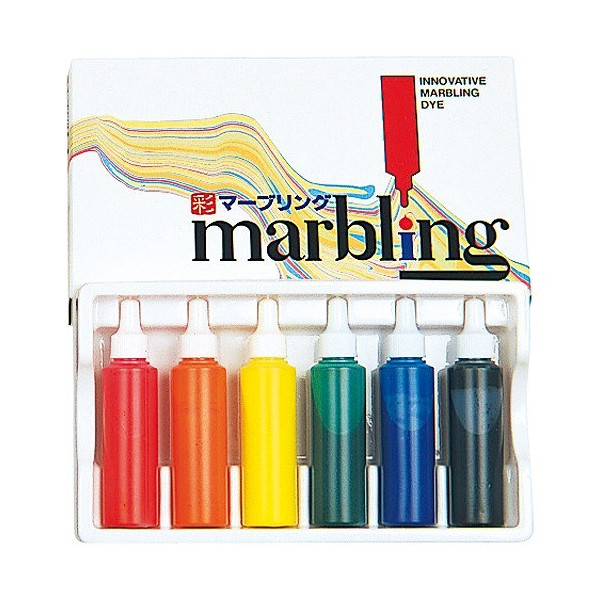 - ◎38201★BK彩液マーブリング★6色組★赤青黄緑橙黒★各12cc★マーブリング・板締め絞りができる★伝承玩具★知育玩具★