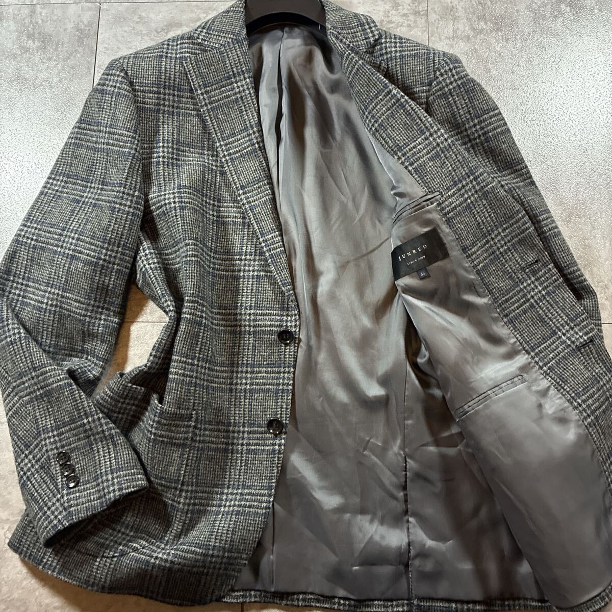 - 【美品・XL相当】JUNRED ジュンレッド テーラードジャケット グレンチェック グレー ウール ポリエステル メンズ 日本製 秋冬 ブレザー LL