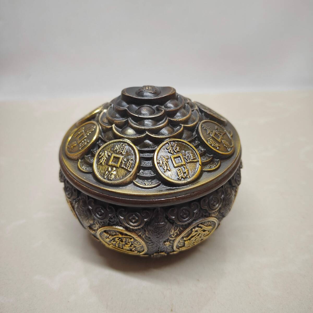 - 『館蔵珍品 紫銅製 塗金 小錢幣 聚寶盆 置物 賞物』稀少珍蔵品 古賞物 貴重物品 収蔵品 中国古美術 時代物 古董品
