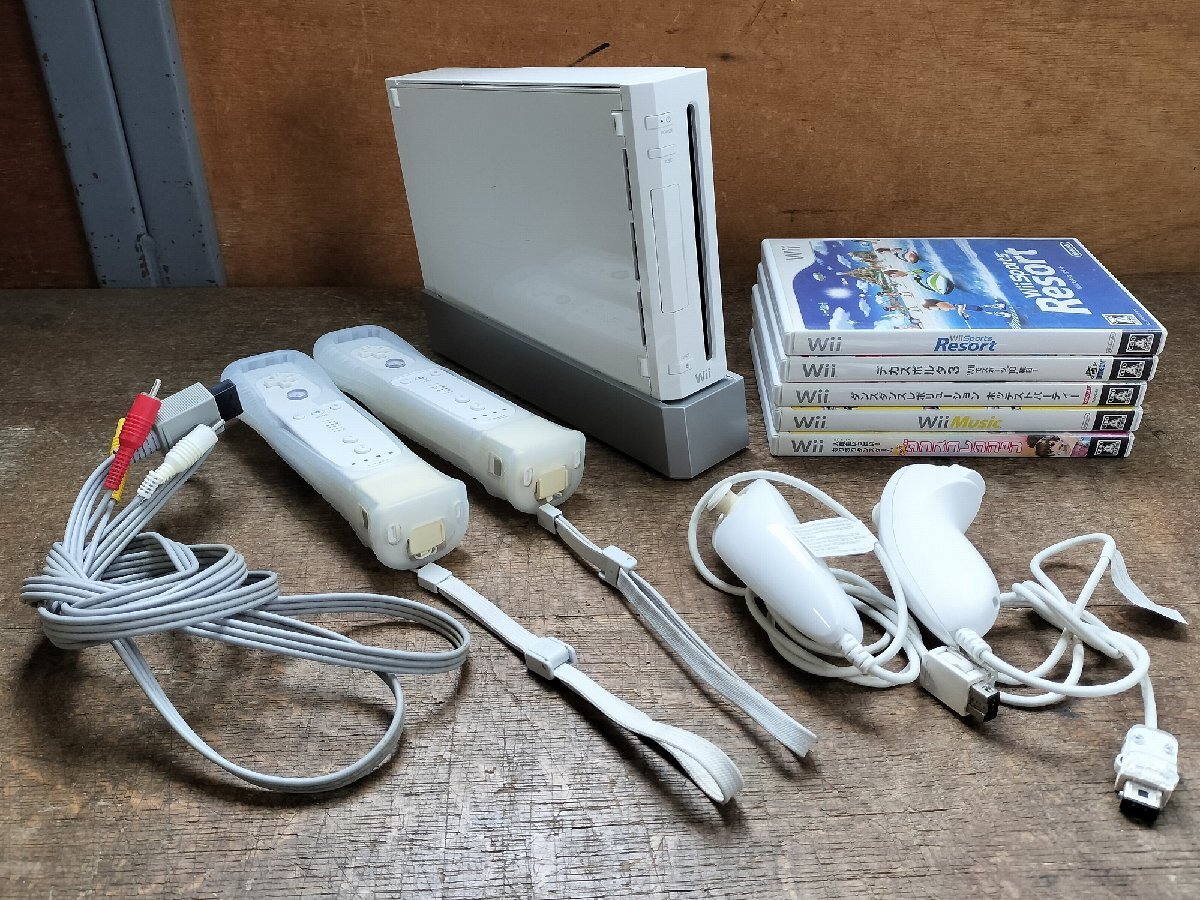 > Nintendo Wii本体 + コントローラー + ソフト4個(商品画像にあるだけ)/ ジャンク品 電源ケーブル無し 動作確認無し 現状渡し