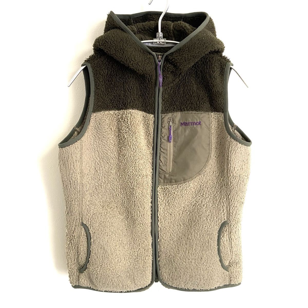 - 【Marmot/マーモット】刺繍ロゴ ボアフリースベスト/M表記/ベージュ×カーキ×紫/M表記/衝撃プライス!大人気アウトドアウェア★C78