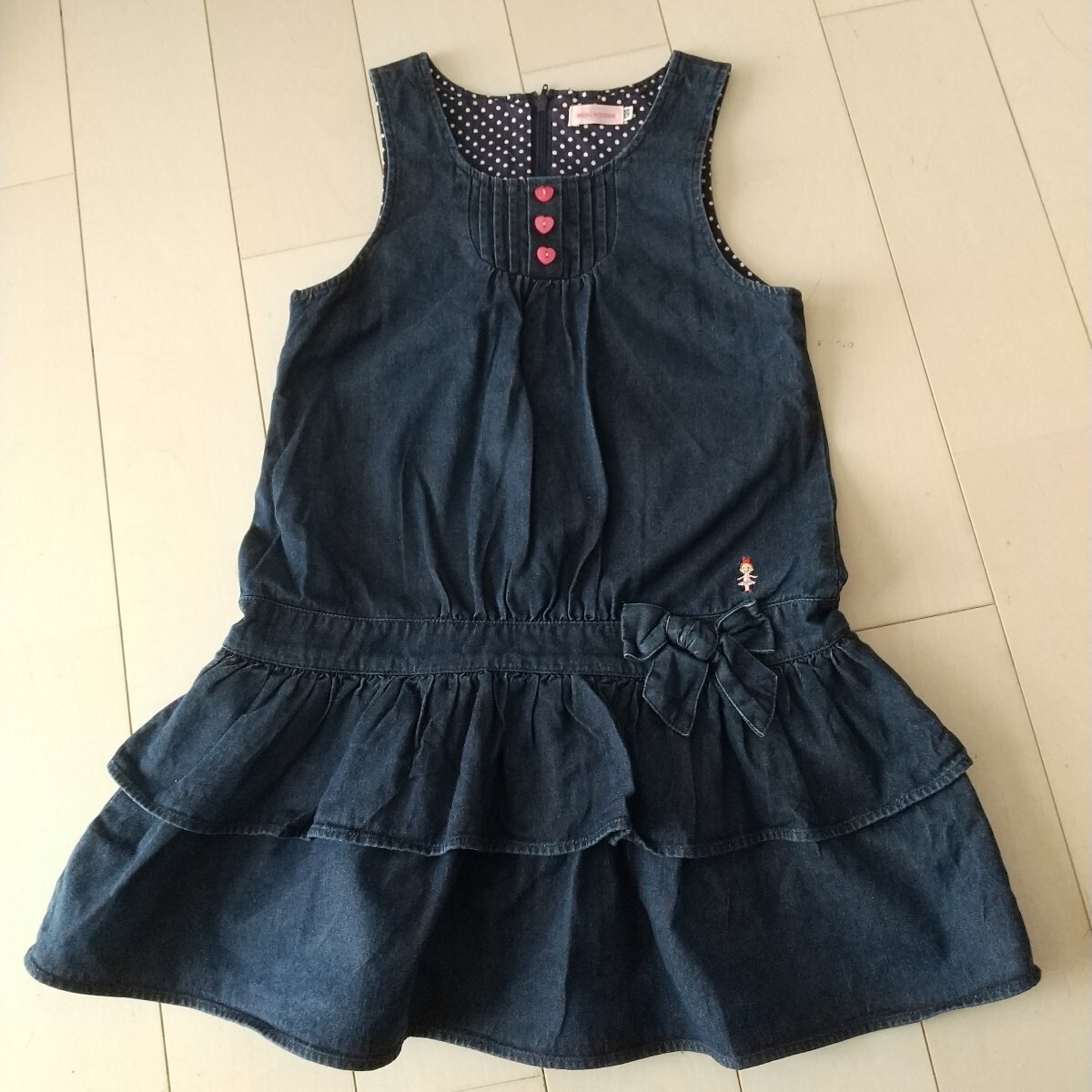 - 120 ミキハウス リーナちゃん リボンデニムノースリーブワンピース