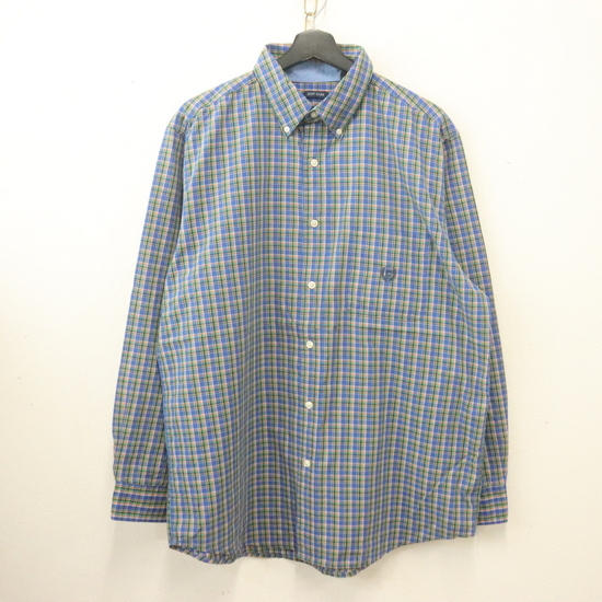 - n980 2000年代製 CHAPS 長袖シャツ■00s 表記Lサイズ ブルー ボタンダウン チェック アメカジ ストリート 古着 古着卸 激安 希少