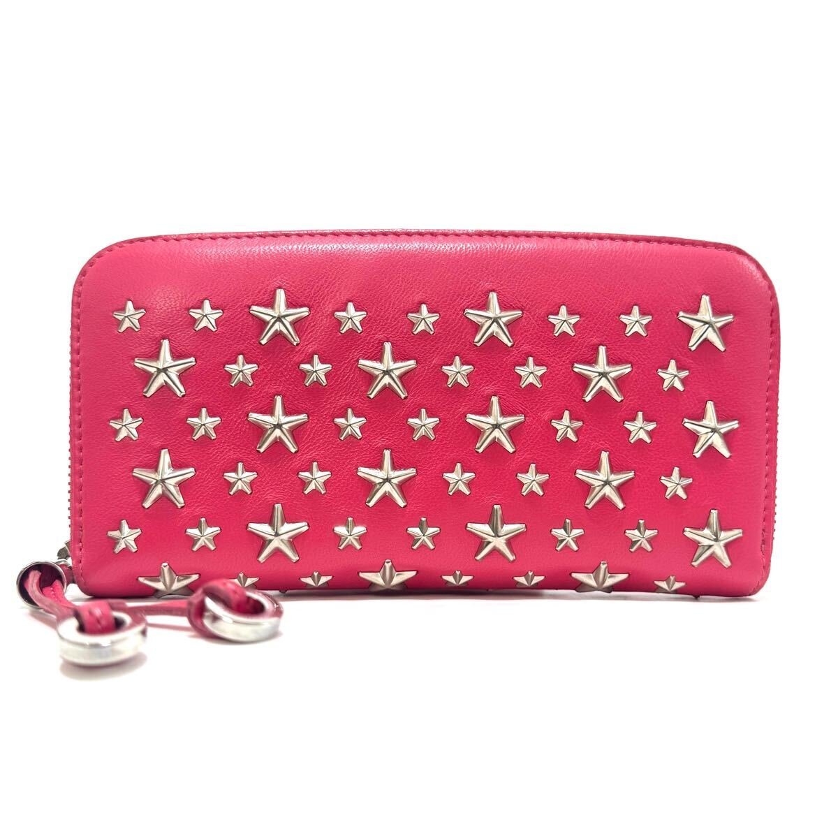 > ジミーチュウ 長財布 ロングウォレット ピンク シルバー レザー スタッズ スター 星 ラウンドファスナー JIMMY CHOO