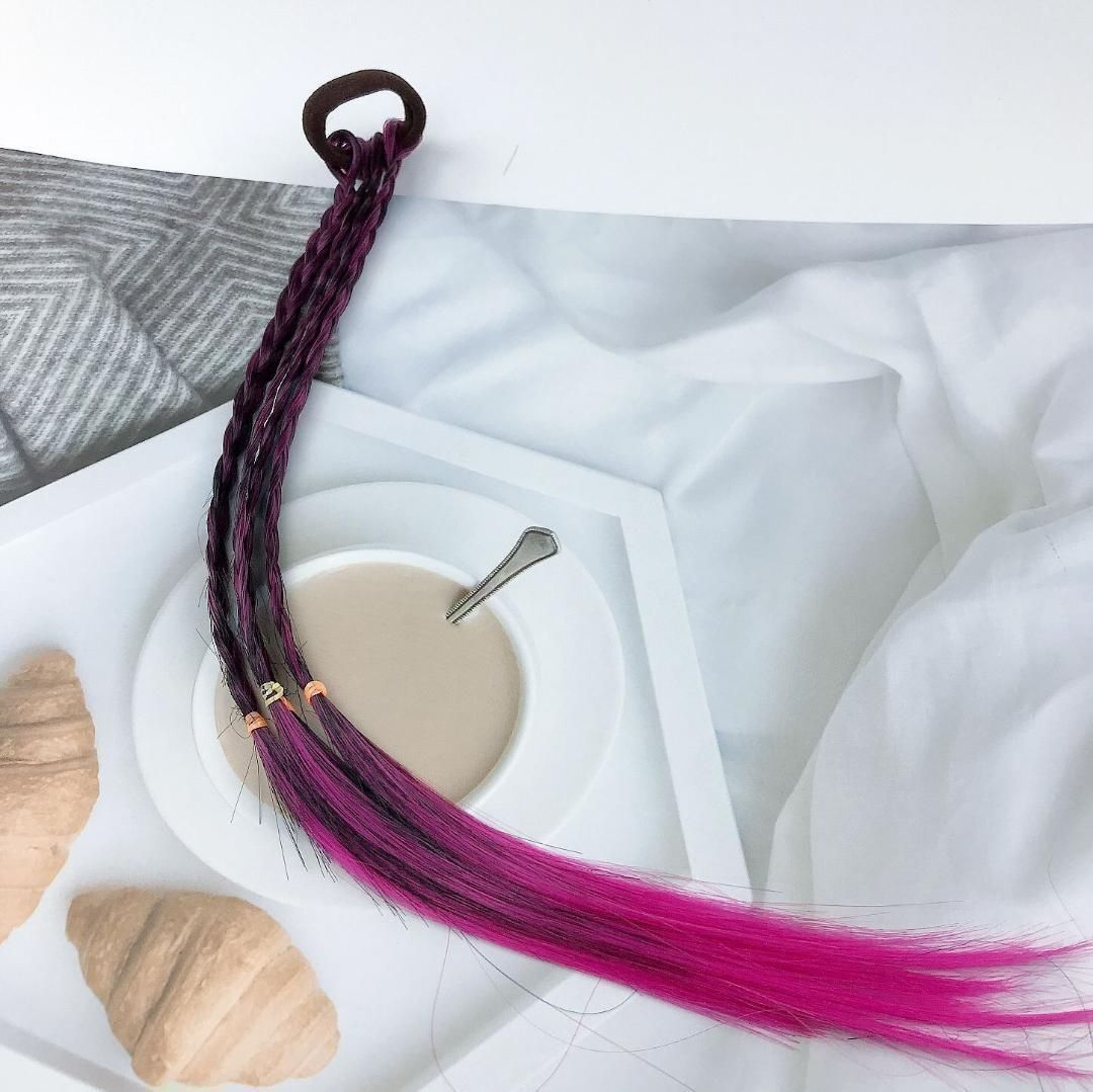 - ウィッグ エクステ ヘアエクステ 三つ編み 編み込 キッズ890 ダンス 発表会 イベント 子供 ポニーテール ヘアゴム グラデーション