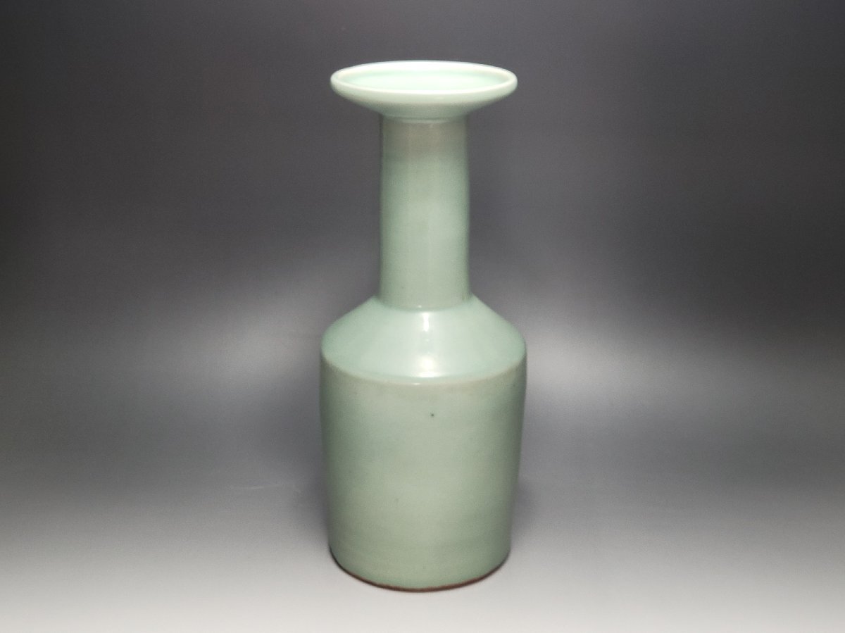 - 青磁 長頸 花瓶 時代唐物 高さ約30.5cm / 宋元時代 花瓶 飾瓶 花插 花器 唐物 人間国宝 李朝 高麗 古玩 古董
