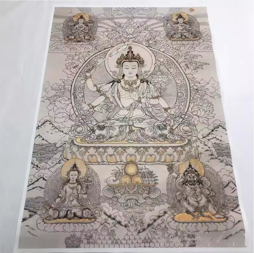 - 店長勧め 極美品 ! 中国美術 五部文殊観音菩薩 仏教美術 画仙紙 表装なし 未表装 画芯 鑑賞 巻物 掛け軸 装飾 zh836