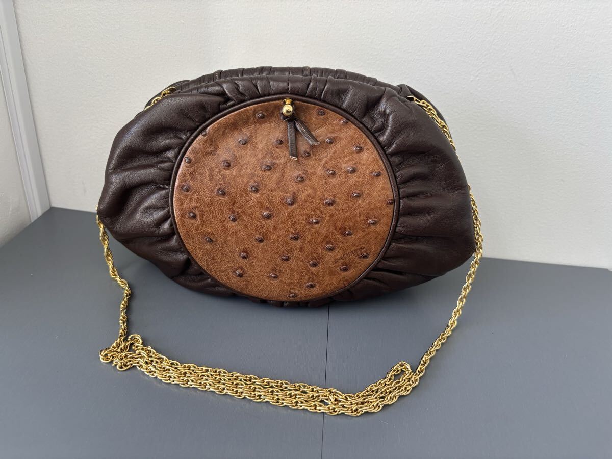 - S368 HAMANO ハマノ ショルダーバッグ オーストリッチ調 チェーン ブラウン 高級感 ダチョウ レザー ブラウン 鞄