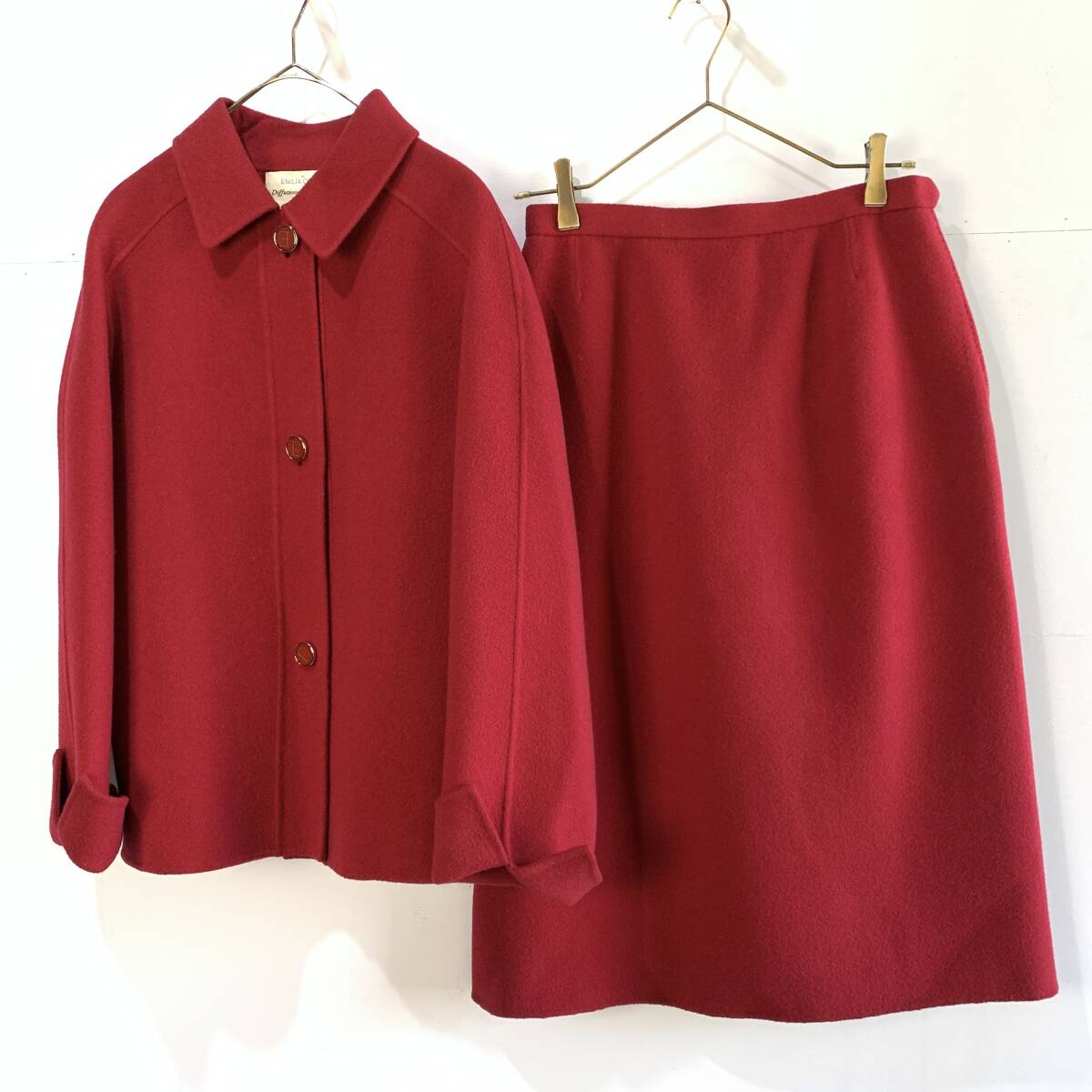 > ☆イタリア製 Vintage EMILIA CONTINI AGNONA セットアップ 上下 ウールメルトンジャケット スカート ワインレッド【送料一律/同梱可能】K